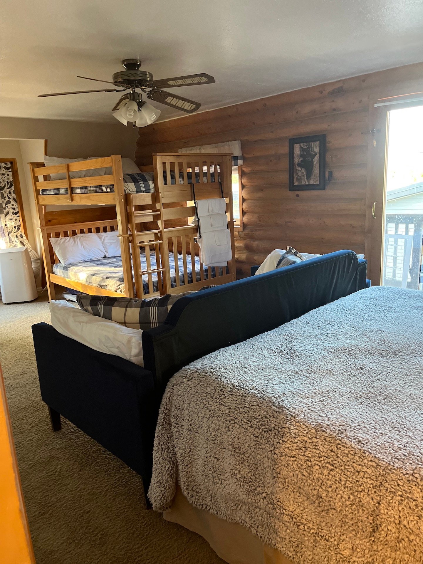 What sets Mama Bear Cabin apart from others is just a very family oriented, unique, cozy log cabin made for all families. Guest say it feels like home when they visit. They don’t want to leave the cabin! It’s walking distance to the lakes, shops & restaurants, and there’s free boat and ATVs parking.